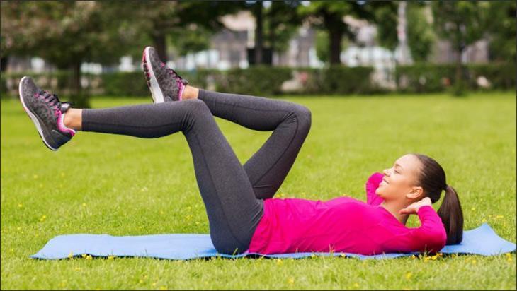 Упражнение заставляет потрудиться не только мышцы ног, но и пресс. Так что, покрутив воображаемые педали даже 1 минуту, вы уже почувствуете хорошую нагрузку.