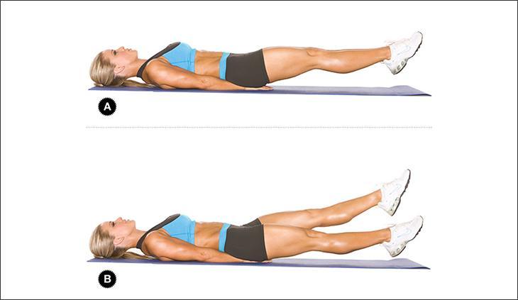 - Руки располагайте вдоль туловища или подложите ладони под ягодицы. Главное держать поясницу прижатой к полу