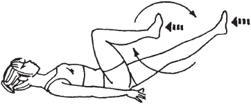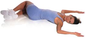 1. Исходное положение — лежа на спине, руки вытянуты вдоль туловища или сложены за затылком, пятками касаемся ягодиц. Надо коснуться коленями пола справа и слева от туловища, спина и голова при этом, неподвижны, колени вместе.