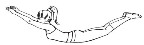 3. Лежа на животе, максимально прогибаемся назад, стараясь дотянуться до ягодиц затылком.