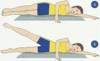 4. Находясь на боку, поднимаем выпрямленную ногу вверх. После 20-30 раз, меняем сторону. Идеальное занятие для внутренней стороны бедра.