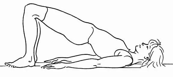 5. Лежа на спине, опираемся на стопы и локти, и поднимаем таз вверх, опускаем вниз. Темп регулируется самостоятельно.