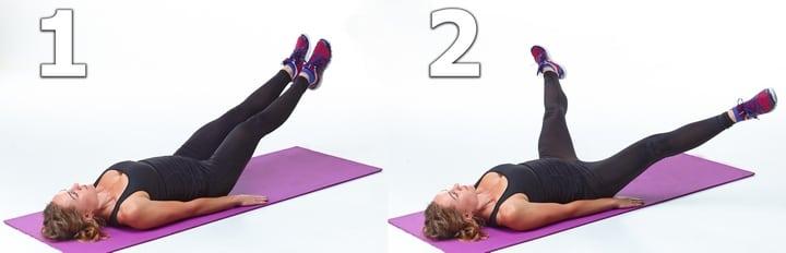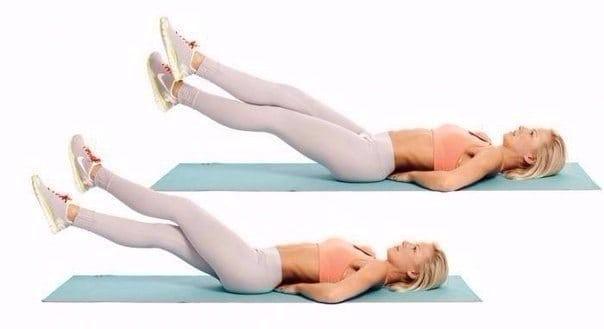 Лежа на спине, поднимаете прямые ноги и перекрещиваете их по 20 раз, как будто имитируете движения ножниц. Затем опускаете.