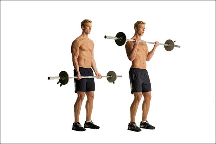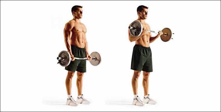 - Подъем штанги на бицепс – 8-12 повторений по 3-4 сета или подъем EZ-штанги на бицепс – 8-12 повторений по 3-4 сета