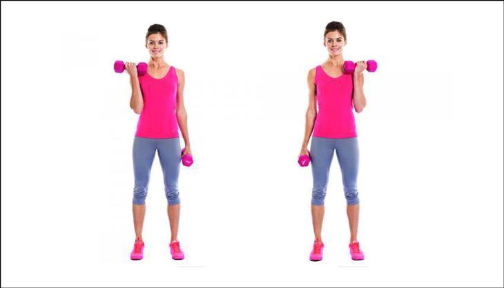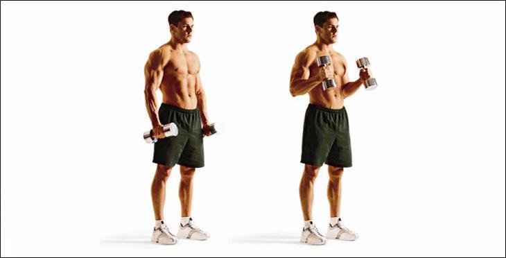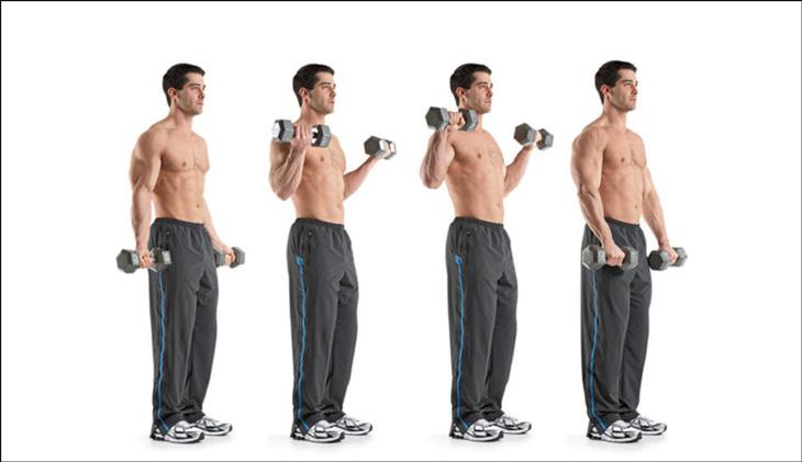 - Сгибания рук с гантелями поочередно – 10-15 повторений по 2-3 сета