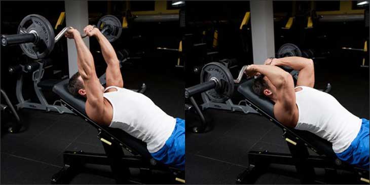 - Отжимания на брусьях – 6-12 повторений по 3-4 сета или жим лежа узким хватом – 6-12 повторений по 3-4 сета