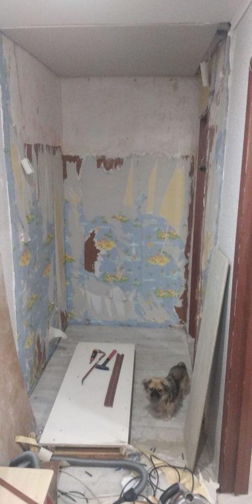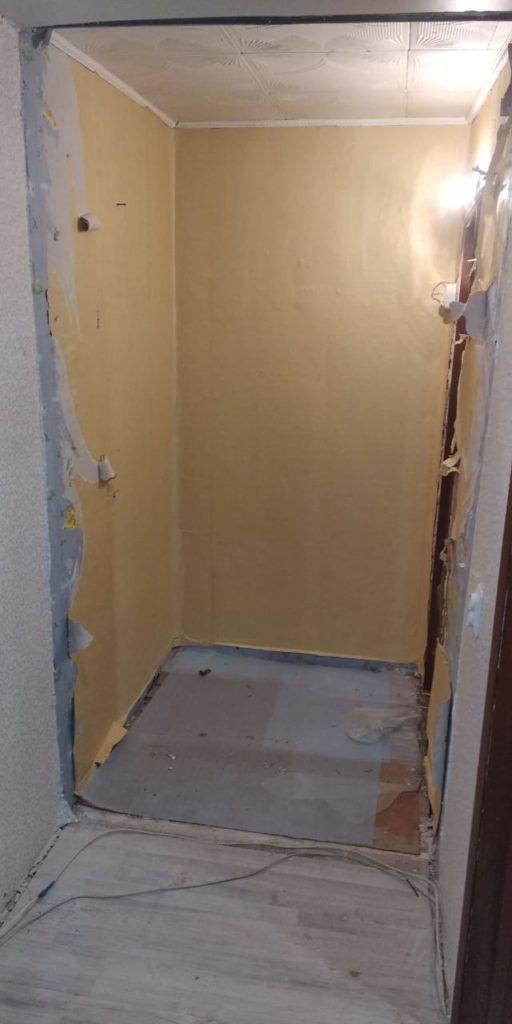 Начался ремонт с демонтажа стены, расположенной в коридоре. В результате открылась отличная площадь. Размеры дальней стены составляют 120 см, а боковой — 160 см.