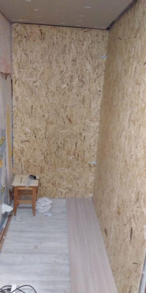 Я оборвала обои и новые листы ОСБ были прибиты к стенам.