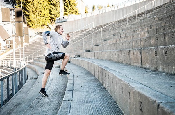 При беге вниз по лестнице, большое напряжение получают колени. Поэтому если вы делаете спринт, бегите вверх по лестнице, а вниз просто идите. Это позволит оптимизировать восстановление и сохранит ваши суставы.