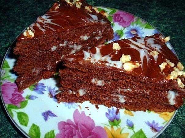 Верх порываем глазурью: 1 ст.л какао, 1 ст.л сметаны, 1 ст.л сахара,