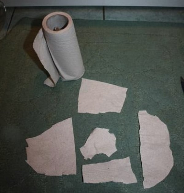 - На очищенное лицо нанеси при помощи кисточки белок. Бумажную салфетку нарежь (или порви) на полосы и приклей к лицу, как папье-маше. Сверху смажь еще одним слоем белка.